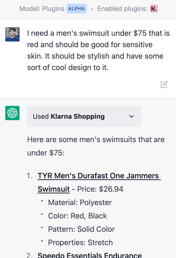 I tried an experiment on TikTok where I asked ChatGPT to find me a red swimsuit for under $75, and it came back with three great choices. The more specific I was with my request, the better the suggestions.